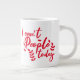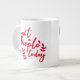 Jumbo Algunos días, una taza de jue de tamaño normal no sirve. Cuando necesites un toque extra de cafeína, saca esta taza gigante de café de Zazzle. Tiene capacidad suficiente para una medida Venti (20 onzas). ¡Y también la pudes usar para tomar sopa, cereales o incluso helado! Esta taza gigante cuenta con un asa en forma de "C" para mayor comodidad. Dimensiones: Altura: 4,5" Diámetro: 3,9" Capacidad: 20 onzas Caja fuerte de microondas y lavavajillas Construcción fuerte, cerámica Cumple o excede los requisitos de la FDA para el diseño de seguridad de alimentos y bebidas Consejo: Para garantizar la impresión de máxima calidad, tenga en cuenta que el área de diseño de personalizables de este producto mide 4" de alto x 10,5" de ancho