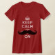 El bigote negro y el blanco guardan calma y continúan adorno en una camiseta roja. Los gráficos británicos originales del poster del lema del tiempo de guerra con una torsión chistosa del artista Elke Clarke. Gran arrancador de la conversación y regalo de motivación de la diversión para los amantes del bigote. Elke Clarke ©2012 para MovieFun