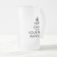 Manténgase tranquilo y déjelo manejar la taza de vidrio de cerveza congelada. Plantilla moderna de tipografía con corona. Diseño de color personalizado. Crea tu propia calma y sigue con las citas. Divertida idea de regalo de cumpleaños para compañeros de trabajo, papá, mamá, esposo, esposa, colega, jefe, empleado corporativo, mejor amigo y otros. Regalos de humor de oficina para hombres y mujeres.