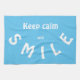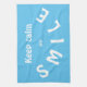 Toalla de té azul para mantener la calma y sonreír en blanco