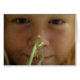 mi hija observa curiosamente este fascinante insecto, mientras que la mantis rezadora parece estar más interesada en mi cámara (o en mí)