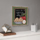 Un reloj de pared lindo de la cocina con las manzanas del país, la empanada de manzana y un tablero de tiza.