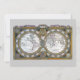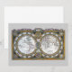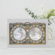 Ilustración vintage mapa antiguo del mundo que presenta ambos hemisferios de Claude Auguste Berey, 1688. Este mapa internacional del mundo antiguo presenta los hemisferios oriental y occidental, así como los polos norte y sur y todos los continentes. Las casillas de texto rodean los hemisferios de este atlas, un borde dorado ornamentado decora los bordes y un pergamino decorativo está en la parte superior.
