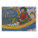 Ilustración vintage detalle de un antiguo mapa mundial del artista Martin Waldseemuller (c. 1470-1520); cartógrafo alemán. Él y Matthias Ringmann están acreditados con el primer uso registrado de la palabra América, en el mapa de 1507 Universalis Cosmographia en honor al explorador florentino Amerigo Vespucci. Este detalle de un mapa antiguo de 1507 presenta a Amerigo Vespucci, explorador, navegante y cartógrafo italiano. Está sosteniendo una herramienta de navegación, un compás de punta, que se utiliza para medir distancias en un mapa. El viento sopla desde las nubes sobre los océanos y mares.