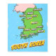 Un mapa de estilo de arte pop de Corea del Sur con un fondo azul brillante y un patrón punteado.