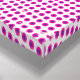 Un mapa estilizado de Dinamarca con un estilo de arte pop, con un contorno verde del país sobre un fondo punteado azul y rosa. El mapa destaca las principales ciudades con etiquetas rectangulares amarillas, incluyendo Aalborg, Aarhus, Esbjerg, Odense, Copenhague y Lolland.