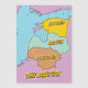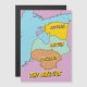 Un mapa estilizado de los estados bálticos, Estonia, Letonia y Lituania, representado al estilo de un libro de historietas. El mapa está delineado en negro y lleno de colores vivos: Estonia es amarillo, Letonia es verde claro y Lituania es naranja. El fondo es de color rosa y violeta.