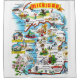 Excelente y colorido mapa vintage de postal del estado de Michigan reutilizado en una cortina de ducha.