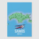 Mapa de la isla griega de Samos con un hermoso avión rojo de estilo vintage.