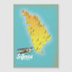 Mapa de la isla griega de Samos con un hermoso avión rojo de estilo vintage.