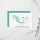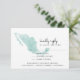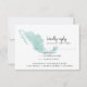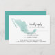 Esta tarjeta RSVP cuenta con un mapa acuático de México con un corazón diminuto sobre Los Cabos. Las palabras "Amablemente contestar" están en un estilo de letra cursivo. Todos los detalles de la tarjeta de respuesta están en negro e incluyen las preferencias de elección de comida. La parte trasera de la tarjeta tiene un fondo verde agua con los nombres de la novia y del novio y la fecha del boda en blanco. Este diseño se coordina con los demás productos de la colección Boda Mapa de México.