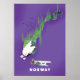 Afiche de viajes de vacaciones ilustrado por las luces del norte de Noruega.