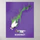 Afiche de viajes de vacaciones ilustrado por las luces del norte de Noruega.