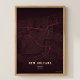 Una impresionante impresión artística del mapa de Nueva Orleans representada en una vibrante paleta de colores rubí. Cada calle, autopista y vía fluvial está mapeada con detalle fino contra un fondo rubí rico. Perfecto como pieza de declaración para su hogar, oficina o como regalo para cualquier oriundo de Nueva Orleans.