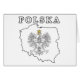 Diseño sencillo con un esquema de mapa de Polonia con el águila blanca polaca, el escudo de armas o el escudo de Polonia en el centro. La palabra Polska está por encima del mapa.