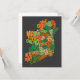 Mapa de texto de tipografía con los condados de Irlanda. Tonos de texto verde y naranja sobre un fondo de carbón gris.