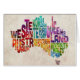 Mapa de texto tipográfico de Australia. El mapa está hecho con los nombres de los estados y territorios de Australia, en un estilo acuático urbano.