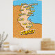 Pop Art Ilustró un mapa africano de Túnez en un hermoso estilo vintage usado.