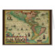 Mapa del mundo antiguo del ilustracion vintage con las Américas, 1606, este gráfico internacional incluye América del Norte, Central y del Sur y los Océanos Atlántico y Pacífico. Por el cartógrafo Jodocuments Hondius (alias Jodocus Hondius the Elder). Los barcos navegan en los mares con una variedad de vida marina y hay una escena con nativos y animales en la esquina.