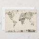 Un mapa del mundo hecho de un collage de postales antiguas, en diferentes idiomas y con sellos de una variedad de países, en un fondo de estilo antiguo.
