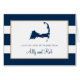 Mapa de Caídos del Cabo Azul Oscuro con rayas azules y blancas y borde dorado claro. El corazón rojo móvil sobre el oeste de Dennis, Massachusetts, así que si necesitas una ubicación diferente, haz clic para editar y mover fácilmente el corazón a esa ubicación. Perfecto para tus tarjetas de agradecimiento de Boda. Para obtener información sobre cambios de diseño personalizados por parte del diseñador independiente, envíe un correo electrónico a paula@labellarue.com ANTES de que el personalizar realice un pedido.