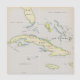 Mapa ilustrado de Cuba (más las islas circundantes) en un hermoso estilo vintage detallado, decorado con un gran plano rojo.