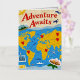 Mapa mundial salpicado de alfileres de corazón y lugares emblemáticos. La aventura espera