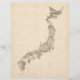 Un mapa de Japón, hecho de un collage de partituras antiguas y antiguas sobre un fondo de estilo antiguo.