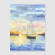 Mar al atardecer. Un bonito yate sale de la bahía y va al mar. El ilustracion acuarela fue dibujado y escaneado. Paisaje acuático hecho al aire libre en 2024.