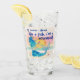 Comparte algo de humor con este tumbler de vidrio que presenta una sirena acuarela tumbada en la playa, disfrutando de la puesta de sol y una bebida tropical con una leyenda "Por supuesto que bebo como un pez, soy una sirena" con letras de pinceles azul marino. Perfecto para los temas "Bajo el mar". Arte de KL Stock.