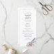 Los programas de ceremonia de los bodas de la moda costera incluyen los detalles de la ceremonia en la parte delantera y la fiesta de las novias en el reverso, acentuada por ilustraciones vintage de conchas marinas de color rosa pastel y marfil, para una apariencia de playa perfecta para los bodas de verano.