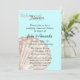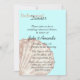 La invitación elegante de la cena del ensayo del boda del tema de la playa hecha en aquamarine ligero con los gráficos de una almeja grande tiene gusto de la cáscara, en la esquina inferior izquierda de la invitación. El moreno y el texto coloreado negro está listos para personalizar para su cena del ensayo del boda.