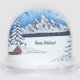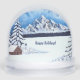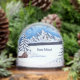 Un globo con una hermosa escena invernal que incluye montañas nevadas, cabaña rústica y pinos cubiertos de nieve. La imagen se puede personalizar. También tiene la opción de agregar texto. Obra de arte original de W.B.