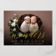 Elegany anuncio de nacimiento de vacaciones para mellizos presenta una sola foto horizontal o orientada al paisaje de sangrado completo con "maravillas de su amor" colocadas en un guión lujoso de Relieve metalizado dorado y letras en bloques. Personaliza con los nombres de los bebés o un mensaje personalizado debajo. Las tarjetas cambian a un fondo con patrones botánicos con las estadísticas de nacimiento de tus mellizos e información adicional. Una hermosa elección para celebrar la llegada de tus Navidades son bebés gemelos.