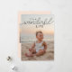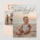 Celebre la alegría de la temporada con esta tarjeta plana de vacaciones de 3 fotos, perfecta para mostrar una foto especial de la familia o una imagen de su bebé o niño. La parte delantera presenta una foto de tamaño completo con una superposición de texto elegante que dice "Es una vida maravillosa", ofreciendo un mensaje de gratitud y alegría navideña. En la parte posterior, hay espacio para otras dos fotos orientadas al retrato y una firma, con un texto elegante que dice "Deseándole una maravillosa temporada navideña". El color de fondo es un suave durazno playero, pero puede personalizarlo fácilmente para que coincida con sus fotos para un toque personal.
