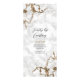 Elegante Lista de Precios Tarjeta para rack de servicios con fondo de mármol y efectos dorados. Este menú de precios incluye espacio para su logotipo, detalles del negocio y precios de sus servicios. Perfecto para usar como lista de precios para su salón de belleza, spa o boutique. Los falsos efectos dorados y el fondo de mármol blanco añaden una moda y un toque de moda a esta tarjeta de guía de precios. Utilícelo como precio para pestañas, uñas, spa o cualquier otro producto o servicio.
