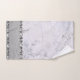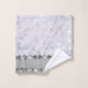 En este elegante juego de toallas se encuentra un elegante patrón de mármol plateado con un borde metálico plateado en el fondo, con diamantes de plata en el borde para obtener un resplandor extra. Los albornoces de moda de cristal alegran el cuarto de baño.