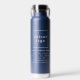 Botella de agua aislada que usted puede personalizar para poner su nombre comercial. Puedes regalarlo como regalo, como regalo o producto promocional para promocionar tu marca a tus clientes o clientes. También puede incluirlo en sus materiales de marketing para promocionar su negocio. Botella de agua de personalizable que puede usar para crear conciencia de marca. El diseño de etiquetas en la botella son textos blancos sobre fondo azul marino. Para personalizar de esta botella de agua, sube el logotipo de tu empresa, escribe el nombre de tu empresa o empresa, dirección, número de teléfono, correo electrónico y página web o de medios sociales. Después de subir el logotipo y escribir textos, por favor compruebe la apariencia en el frente y en el trasero. Si la apariencia le resulta agradable, puede realizar su pedido ahora. Si necesita cambiar el tamaño y mover el logotipo y los textos para que encajen en este frasco o en otros tamaños y estilos que elija, por favor cambie la herramienta de diseño. También puede realizar otros cambios según la apariencia que prefiera en la herramienta de diseño, como cambiar el color de fondo, el color de la fuente y el estilo de fuente.