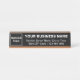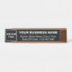 Las placas de nombres se utilizan a menudo para mostrar el nombre y el título del trabajo, pero también se pueden utilizar para mostrar el nombre de su empresa y otra información de su empresa. Placa de nombre de escritorio de tamaño estándar que puede poner su logotipo, nombre de negocio, dirección y número de teléfono. Personalizar y muéstralo en tu mostrador de recepción para que tus clientes o clientes encuentren fácilmente tu dirección e información de contacto. Los colores de diseño son textos blancos sobre fondo negro. Compruebe la apariencia después de cargar el logotipo y escribir textos. Si la apariencia le resulta agradable, puede realizar su pedido ahora. Si necesita cambiar el tamaño y mover el logotipo y los textos para que encajen en esta placa o en otros estilos y tamaños que elija, por favor cambie la herramienta de diseño. También puede cambiar el color de fuente, el estilo de fuente y el color de fondo en la herramienta de diseño. El nombre del escritorio como material de marketing para promocionar su negocio o marca. Un suministro de oficina que se puede mostrar para crear conciencia sobre el nombre de marca.