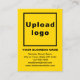 Tarjeta de forma rectangular de formato de retrato pequeño que puede personalizar para poner su nombre comercial. Puede utilizarlo como material de marketing para promocionar su negocio o promocionar su marca a clientes o clientes. Tarjeta pequeña de personalizable que puede utilizar para crear conciencia de marca. También puede utilizarlo como accesorio de su material de embalaje de producto o como inserción de paquete. Los colores de diseño son textos negros sobre fondo amarillo. Para personalizar de esta tarjeta, sube el logotipo de tu empresa, escribe tu nombre de negocio, dirección, número de teléfono, correo electrónico y página web o de red social. Después de subir el logotipo y escribir textos, por favor compruebe la apariencia en el frente y en el trasero. Si la apariencia le resulta agradable, puede realizar su pedido ahora. Si necesita cambiar el tamaño y mover el logotipo y los textos para que encajen en esta tarjeta, cambie la herramienta de diseño. También puede realizar otros cambios en la herramienta de diseño según el aspecto de esta tarjeta que prefiera, como cambiar el color de fondo, el color de fuente y el estilo de fuente.