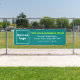 Marca comercial en una Verde azulada pancarta verd
