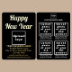 ¡Feliz Año Nuevo! Un nuevo comienzo. Un nuevo comienzo. Festividad para celebrar este enero y para anunciar también su negocio. Tarjeta de vacaciones de Relieve metalizado de personalizable que puede poner su marca de negocios, sus productos o servicios y con el saludo de Año Nuevo. Se pueden poner hasta 4 productos. Personalizar y úselo como material de marketing para promocionar su marca y sus productos o servicios comerciales. Tarjeta de vacaciones de Relieve metalizado que puede utilizar para crear conciencia de marca. Los colores de diseño son Relieve metalizado dorado y textos blancos sobre fondo negro. Para el personalizar de esta tarjeta de vacaciones de Relieve metalizado, cargue el logotipo de su empresa, las imágenes de sus productos o servicios, escriba su nombre comercial, los nombres de sus productos o servicios, la dirección, el número de teléfono, el correo electrónico y el sitio web o la página de su empresa en las redes sociales. ¡Feliz Año Nuevo! Le deseo más ventas esta festividad y los años por venir.