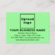 Tarjeta de forma rectangular de pequeño tamaño que puede personalizar para poner su nombre comercial y otra información de su empresa. Puede utilizarlo como material de marketing para promocionar su negocio o promocionar su marca a clientes o clientes. Tarjeta pequeña de personalizable que puede utilizar para crear conciencia de marca. También puede utilizarlo como accesorio de su material de embalaje de producto o como inserción de paquete. Los colores de diseño son textos de color verde oscuro sobre fondo verde claro. Para personalizar de esta tarjeta, sube el logotipo de tu empresa, escribe tu nombre de negocio, dirección, número de teléfono, correo electrónico y página web o de red social. Después de subir el logotipo y escribir textos, por favor compruebe la apariencia en el frente y en el trasero. Si la apariencia le resulta agradable, puede realizar su pedido ahora. Si necesita cambiar el tamaño y mover el logotipo y los textos para que encajen en esta tarjeta, cambie la herramienta de diseño. También puede realizar otros cambios en la herramienta de diseño según el aspecto de esta tarjeta que prefiera, como cambiar el color de fondo, el color de fuente y el estilo de fuente.