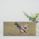 pato macho mallard llegando a tierra en una tranquila mañana serena en marzo.