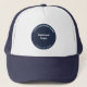 Marca comercial en forma redonda sobre la marina de personalizable y sombrero de camionero de color blanco. Personalizar subiendo el logo de tu negocio, escribiendo tu nombre de negocio, ciudad o ciudad y estado. Puede incluirlo en sus productos promocionales, regalar artículos o regalos a sus clientes o clientes, una estrategia de marketing para promocionar su negocio o su marca. Un camionero de personalizable que puede usar para crear conciencia de marca. Compruebe la apariencia después de cargar el logotipo y escribir texto. Si la apariencia le resulta agradable, puede realizar su pedido ahora. Si necesita cambiar el tamaño o cambiar la posición del logotipo y el texto, ajuste la herramienta de diseño. También puede cambiar el estilo de fuente, el color de fuente y aplicar el color de fondo en la herramienta de diseño.