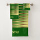 Esto puede ser un regalo especial de boda para los temas de color esmeralda y oro. Rayas doradas contra un fondo de degradado de color verde esmeralda y oro. Una toalla de baño personalizada que se puede personalizar para que sea la suya.