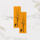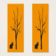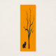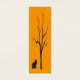 Este marcador muestra un gato negro debajo de un árbol negro desnudo mirando hacia usted frente a un brillante fondo naranja dorado. La imagen se repite en la parte posterior.