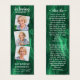 Marcador de oraciones funerales de simpatía moderna. Este sencillo marcador de pomé conmemorativo cuenta con un moderno diseño de mármol verde esmeralda y un exclusivo collage de 3 fotos. Front "In Loving Memory" Personaliza esta tarjeta de marcadores de la oración del funeral con fotos, nombres y fechas y sentimientos de tus seres queridos. Volver ~ Poema 'Miss Me', que puede ser personalizado, por favor contacte si quiere un diseño con un poema específico distinto a. Esta tarjeta de oración conmemorativa será un tesoro agudo, para servicios funerarios, favores funerarios y celebración de regalos de vida. DERECHOS RESERVADOS © 2020 Judy Burrows, Black Dog Art - Todos los derechos reservados. Marcador de oración funeraria 3 Foto Mármol verde