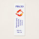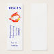 Marcador especial para un Piscán, con dos brillantes naranjas y peces rojos de una pintura acuarela de Judy Adamson. En la parte superior, en letras azules está la palabra 'PISCES' y debajo de ella los cuatro principales rasgos positivos de los nacidos bajo este cartel y las fechas: 19 feb. - 20 mzo. Tarjetas de felicitación y otros regalos también disponibles con este diseño.