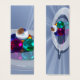 Una imagen en 3D creada en Vue, llena de reflejos y luces brillando desde todas direcciones. Cinco esferas de colores de vidrio azul, rosa, turquesa, naranja y diamante se asientan en una pirámide rodeada por un anillo blanco translúcido. Se sientan sobre un fondo alucinante de rayos azul y blanco pálidos que convergen justo debajo de las cinco bolas de cristal.